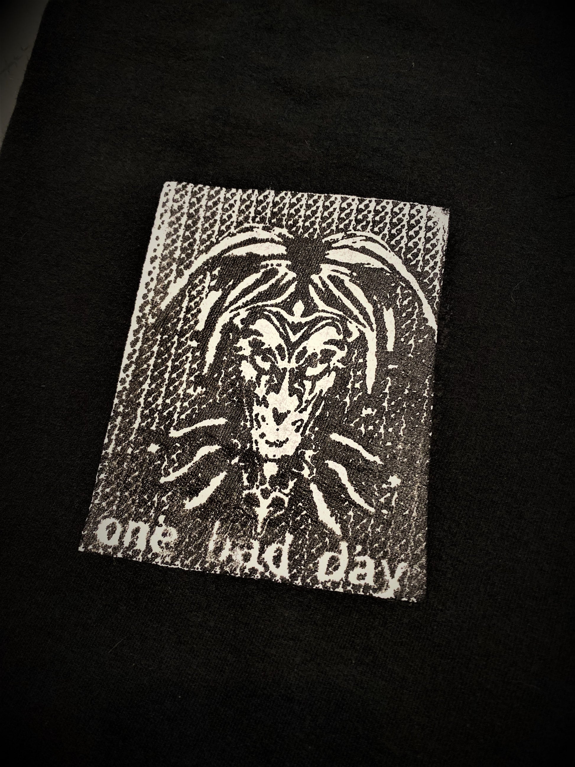 All garments screen-printed on upcycled fabrics. Handsewn tags